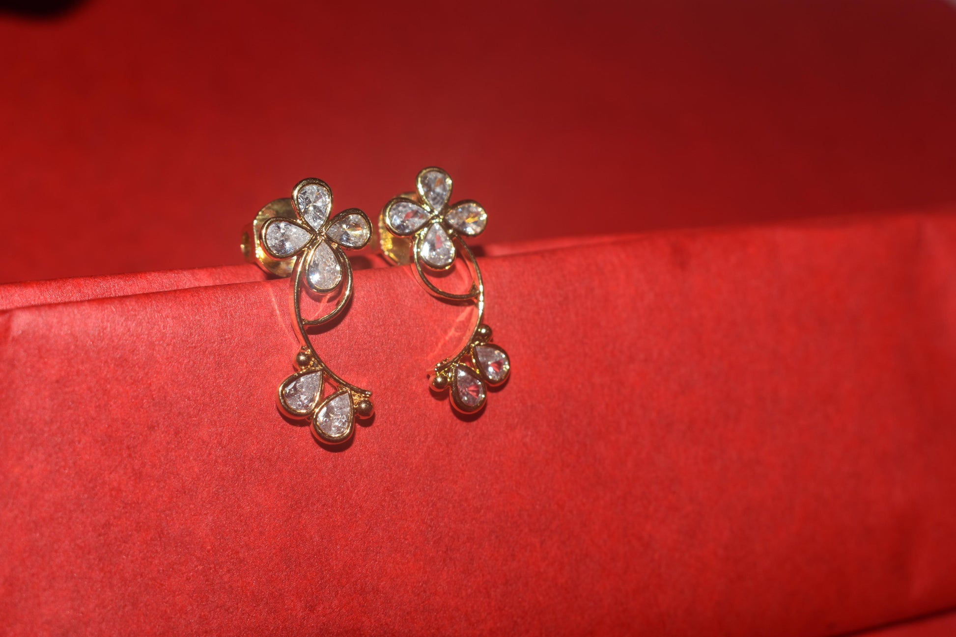 Add elegance to any outfit with these beautifully crafted Polki Kundan earrings. Designed with delicate white stones and a floral twist, perfect for both ethnic and modern looks.